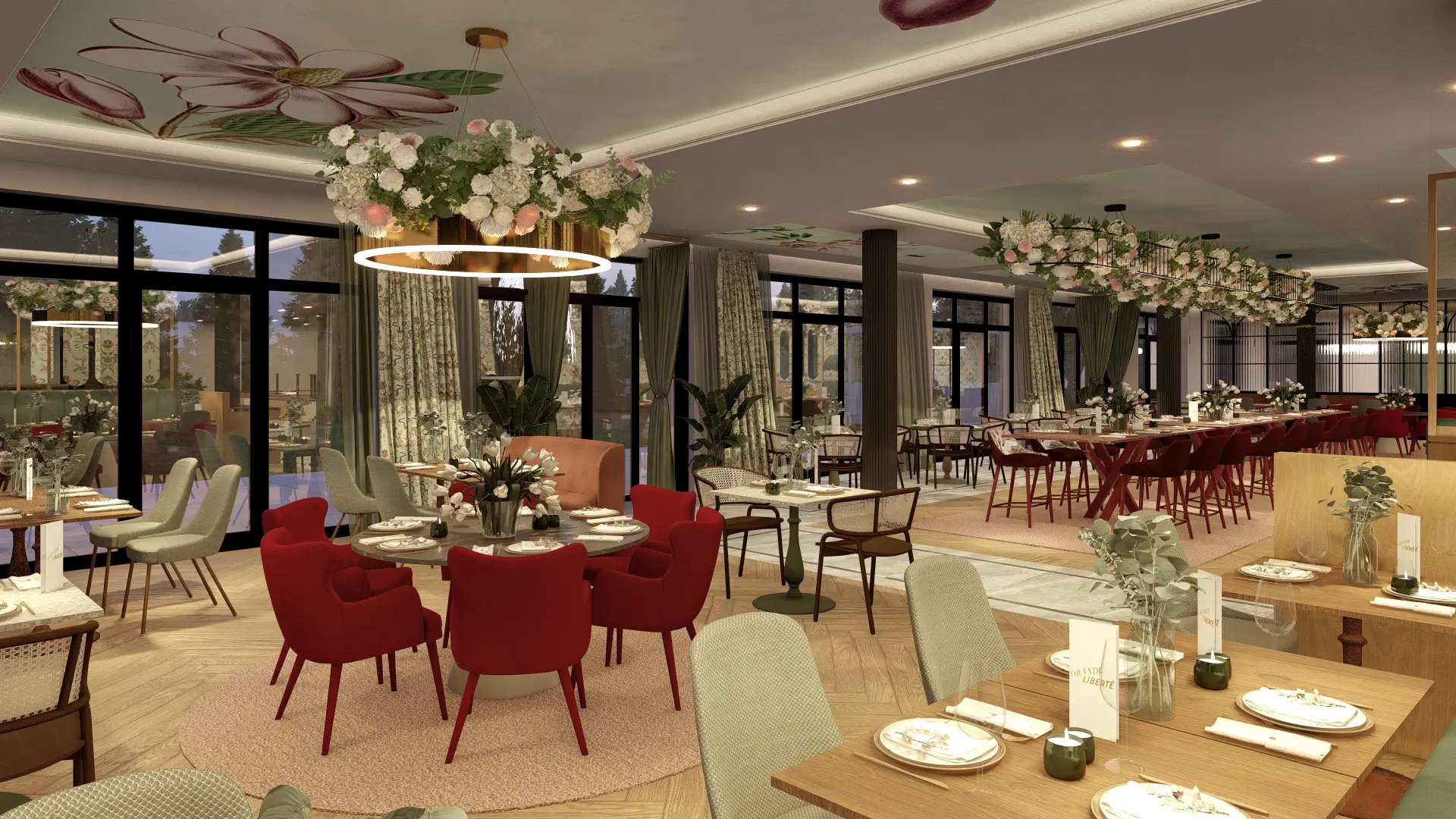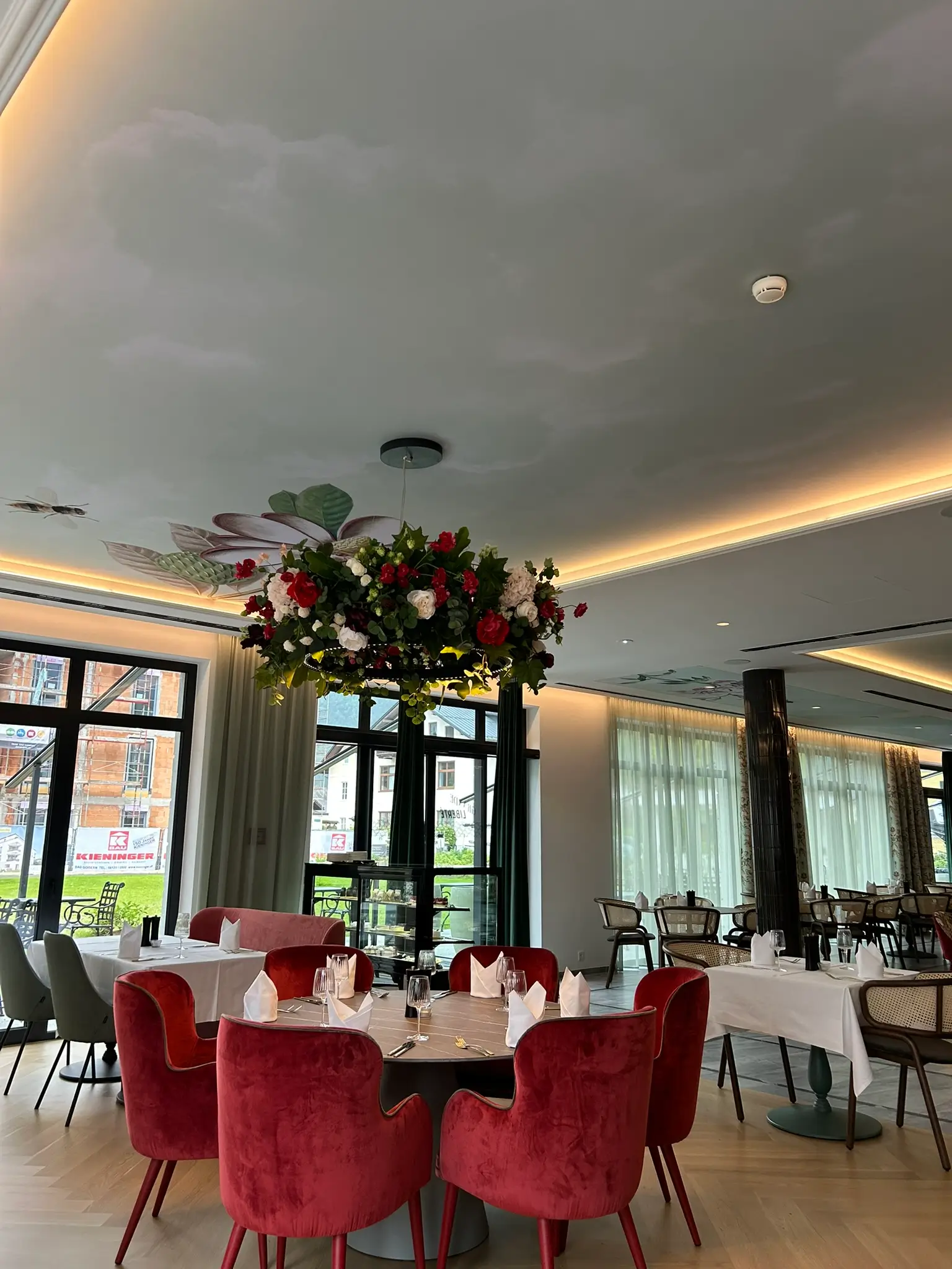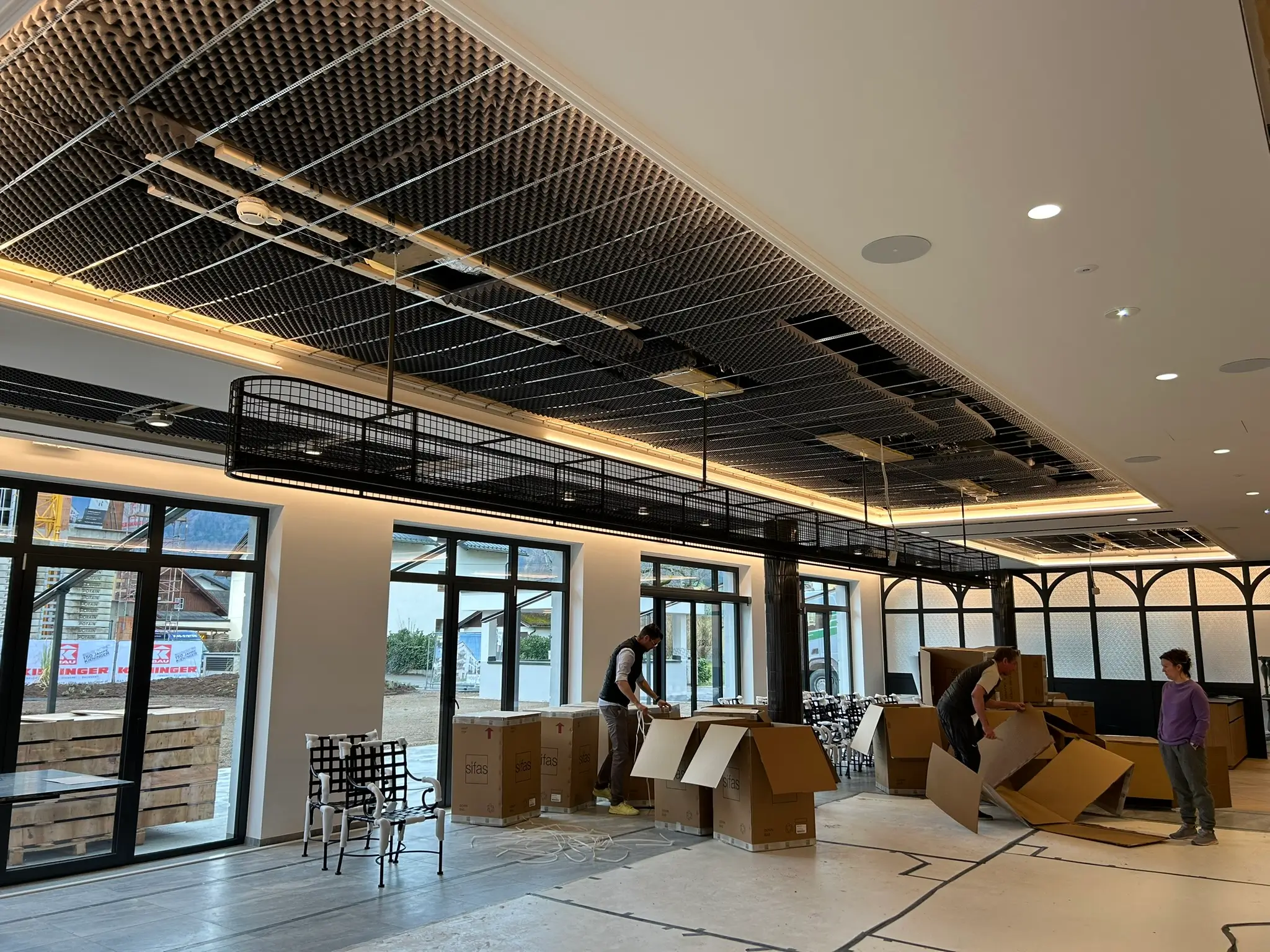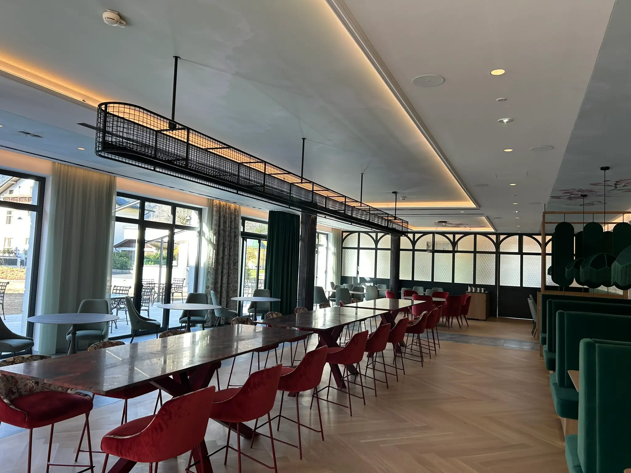 Sonderbau Speisebereich - Hotel Grand Elisabeth Sonderleuchtenbau Bad Ischl vom Rendering – zur Handskizze – bis zur Umsetzung